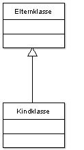Bei der UML Notation der Vererbung werden beide Klassen mit einer gerichteten durchgehenden Linie verbunden. Der geschlossene, nicht ausgefüllte Pfeil zeigt immer auf die Elternklasse. Hieran kann man nun ablesen, dass die Klasse Kindklasse ein Nachfahre der Klasse Elternklasse ist.