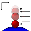 Wir lassen zu Beginn den Ball aus 50 Pixeln Höhe auf eine waagerechte Ebene fallen: >y = 50 Zu diesem Zeitpunkt erfährt er in x-Richtung noch keine Beschleunigung: yR = 0 Das heißt, der Ball befindet sich zu Beginn der Bewegung mit y + yR = 50 + 0 = 50 noch immer auf der y-Koordinate 50. Da die Schwerkraft aber dafür sorgen wird, dass sich der Ball in Richtung Erde bewegt, erhöhen wir nun im nächsten Animationsschritt yR um einen Zähler yR = 1. Der Ball befindet sich also nun auf y = 50 + 1 = 51.